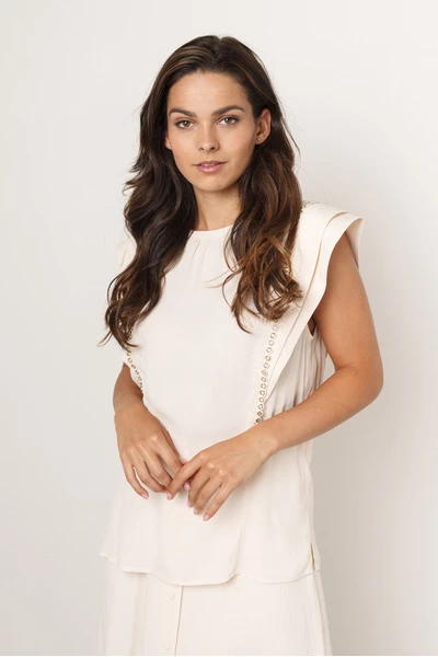 Blouses Dante 6 AUDOUX EMBELLISHED TOP Butter Cream White