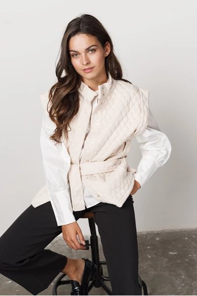 Blouse van Dante6. Deze blouse heeft een ronde hoge halslijn en gepofte schouders. De manchetten sluiten goed aan en reiken iets hoger dan de pols. De blouse is bewerkt met open gewerkte details en draagt los vallend. Uniek Mode maakt gebruik van Nederlandse maatvoering. De maten van Scandinavische en Duitse merken zijn gelijk aan de Nederlandse maatvoering. Maatvoering: XS (34), S (36), M (38), L (40), 42 (XL) Materiaal: 70% katoen, 27% polyamide, 3% elastane Pasvorm: Dit item heeft een los vallende pasvorm.