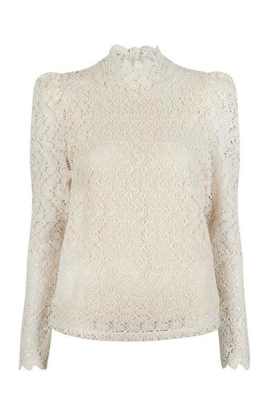 Een stijlvol spel met textuur met de Dunley kanten top met lange mouwen in Butter Cream. Gemaakt van 100% katoenen kant, wordt geleverd met voering en is gesneden tot een slanke pasvorm. De top heeft een korte col en pofmouwen voor een extra touch. Draag de jouwe met een leren broek voor een with-the-brand stijl.