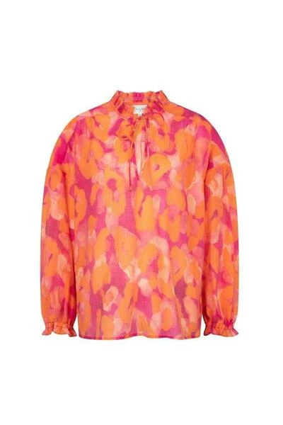 De Cameron leopard blouse van Dante 6 is een oversized dames blouse. De blouse heeft frisse oranje en roze kleuren. Het model is oversized en heeft een diepe V-hals. Combineer deze met een high wiast short en hakken voor een chique look.