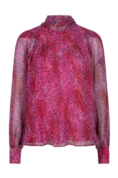 Voor een blouse met een verschil, overweeg dan de Callista drapey top met een print in roze en rode tinten. Het ontwerp is gemaakt van een gekreukt bedrukt viscose chiffon en heeft een hoge hals en manchetten met knopen. Match de jouwe met een Dante6 leren broek en wees klaar voor elke gelegenheid.