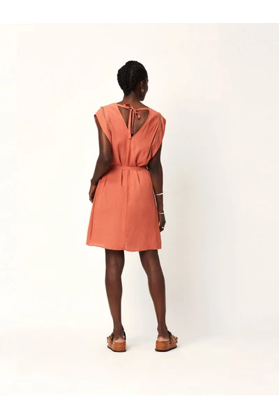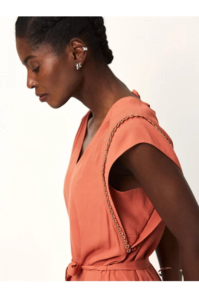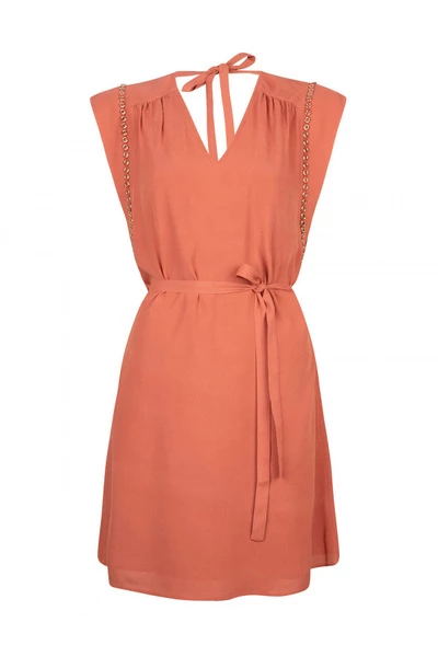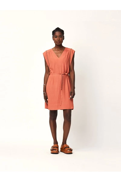 Terwijl je op zonnegloeiende dagen wacht, ga je op zomerse ready favorieten zoals de dansende verfraaide jurk in warme blos. Gemaakt van crêpe viscose, het heeft een diepe V-hals en trekkoord rond de taille. De jurk heeft verfraaiingsdetails op de schouders en scherpe schouders. Combineer het met een comfortabele slipper of opstart voor een moeiteloze maar gemakkelijke look.