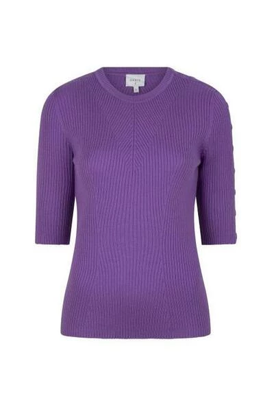 De Badeau button crewneck sweater in de kleur lavender is een paarse top gemaakt van een fijne wolmix. Deze top heeft leuke knoopdetails op de mouw.